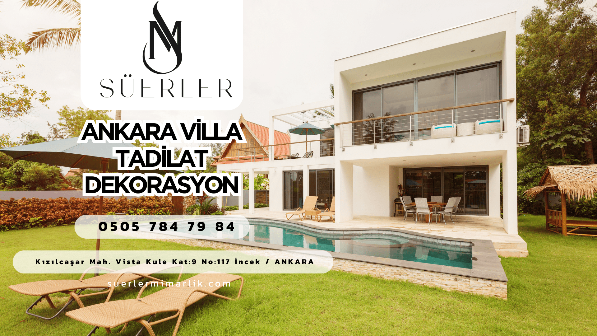Süerler Mimarlık olarak, Ankara Villa Tadilat Dekorasyon projelerinde evinizi yeniden keşfetmeniz için yanınızdayız. Siz de yaşam alanlarınızı yenilemek, daha modern ve fonksiyonel bir hale getirmek istiyorsanız, bize ulaşarak detaylı bilgi alabilir, profesyonel ekibimizle hayalinizdeki eve kavuşabilirsiniz. Ankara’da villa tadilat ve dekorasyon projeleri, sadece bir yenilik değil, aynı zamanda yaşam kalitenizi artıran önemli bir yatırımdır. Süerler Mimarlık olarak, bu süreçte size en iyi hizmeti sunmak ve hayallerinizdeki yaşam alanına kavuşmanızı sağlamak için buradayız. Evinizi baştan aşağı yenilemek, ona yeni bir ruh kazandırmak ve yaşam kalitenizi artırmak için bizimle çalışmaya hazır mısınız? Siz de Ankara villa tadilat dekorasyon projelerinizde profesyonel bir ortak arıyorsanız, Süerler Mimarlık olarak sizin yanınızdayız.